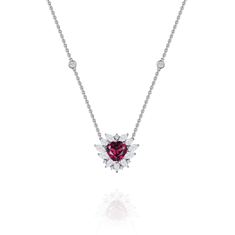 Rhodolite cut heart. Pear-cut, marquise and round-cut diamonds.