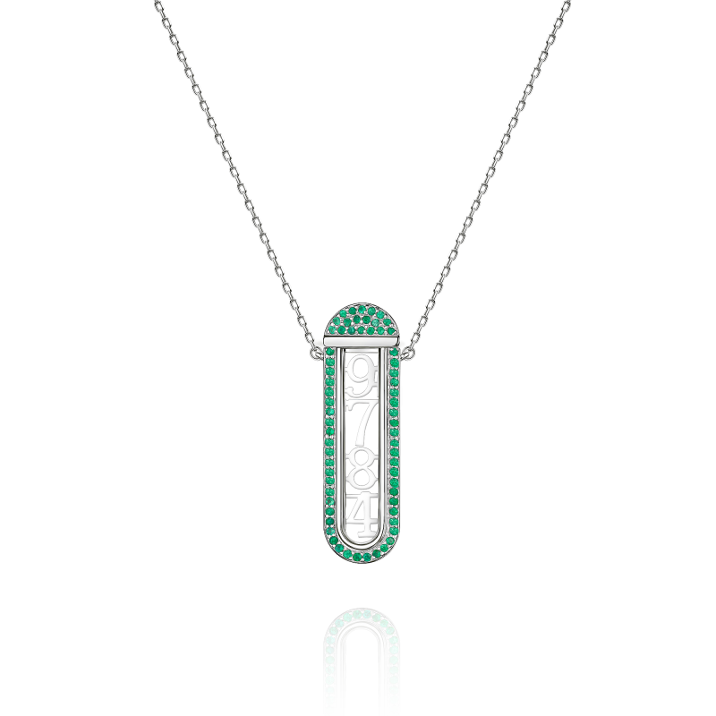 Transformer necklace with emeralds