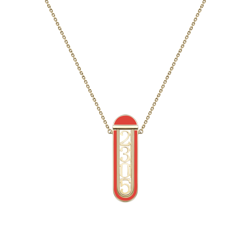 he capsule is made of yellow gold and sapphire crystal, framed by a gold rim with colored enamel, attached to a chain with three levels of length. You can simultaneously put 4 interchangeable gold numbers in the capsule, which serve as a symbol of something important and special. These may be dates associated with certain events or traditions of your family, with circumstances that have changed the course of your life. The set includes branded tweezers and 10 gold digits from 0 to 9, which can be easily changed independently in the capsule.