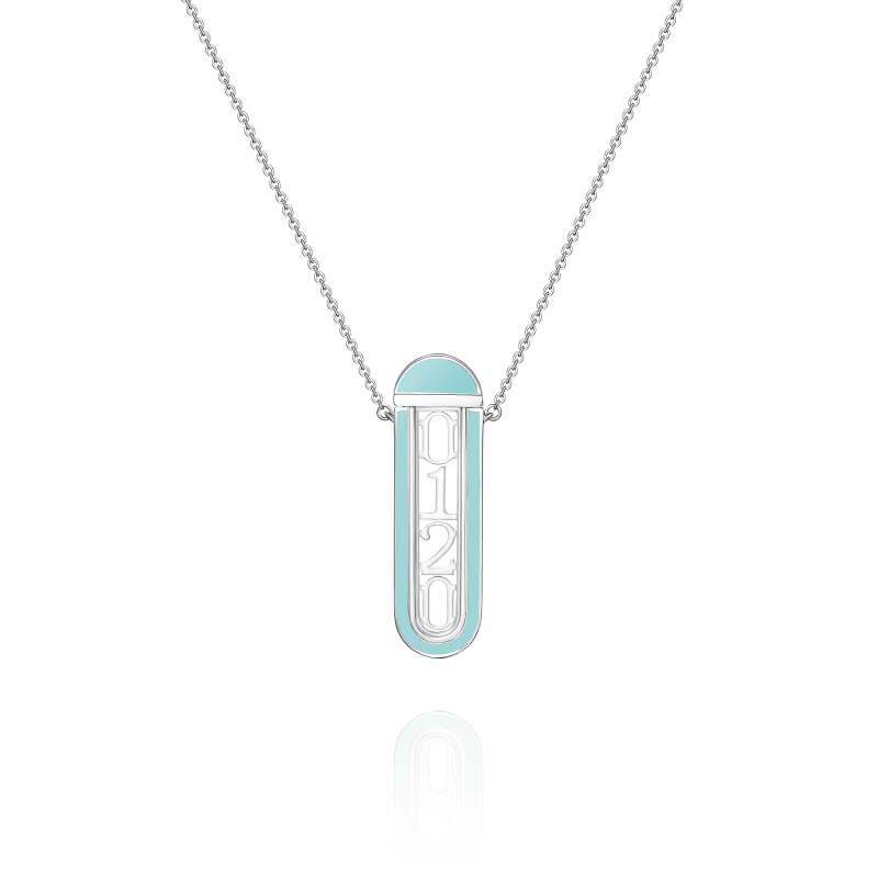 The capsule is made of white gold and sapphire crystal, framed by a gold rim with colored enamel, attached to a chain with three levels of length. You can simultaneously put 4 interchangeable gold numbers in the capsule, which serve as a symbol of something important and special. These may be dates associated with certain events or traditions of your family, with circumstances that have changed the course of your life.