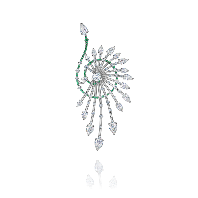Cuff earring with emeralds and diamonds