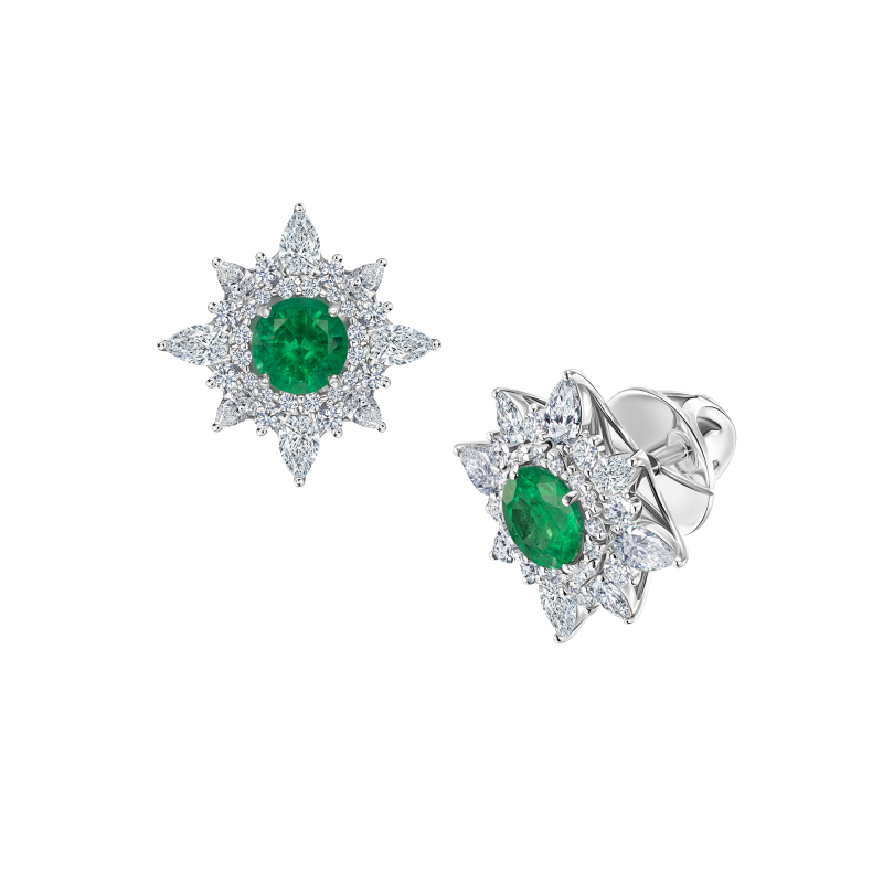 Stud earrings with emeralds and diamonds