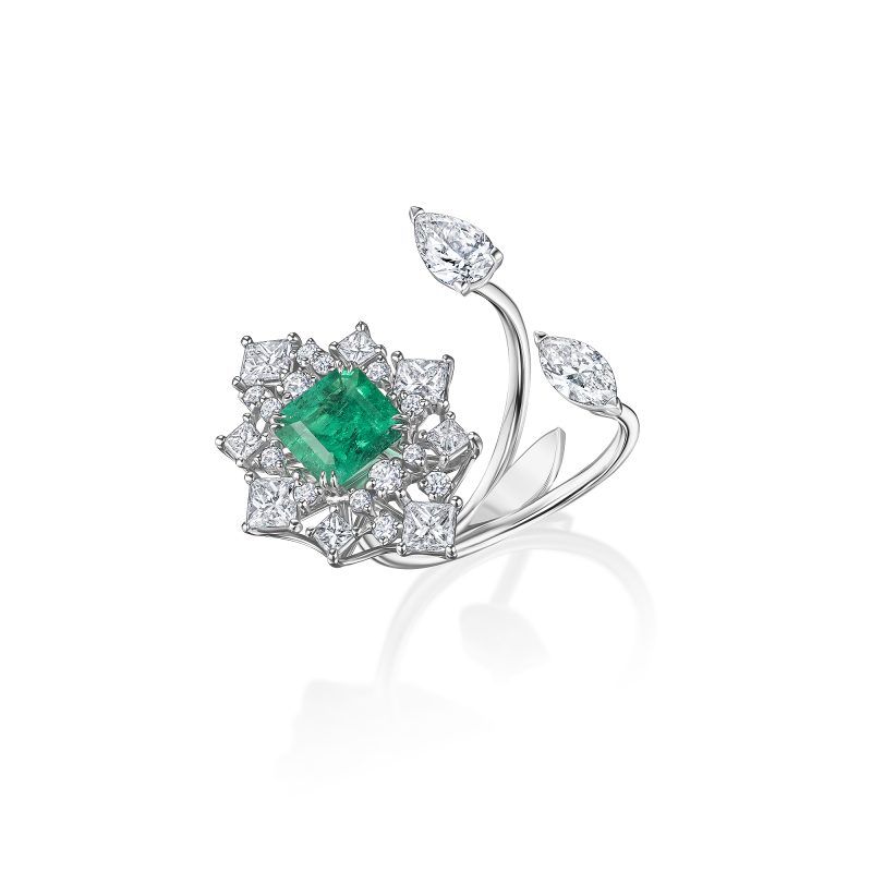 Emerald and diamond ring