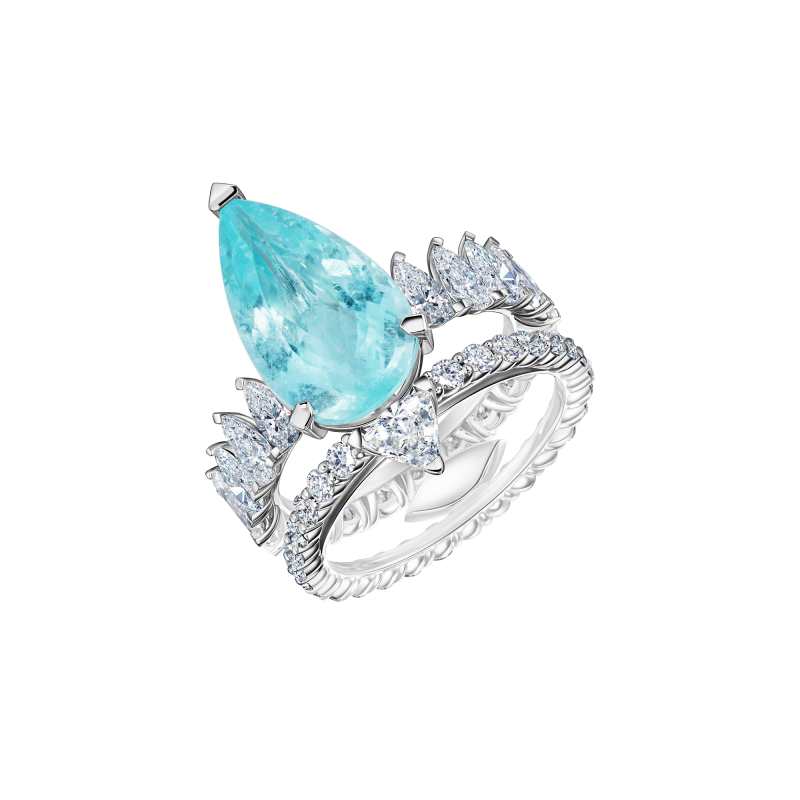 Tourmaline Paraiba cut pear. Trillion, pear and round cut diamonds.