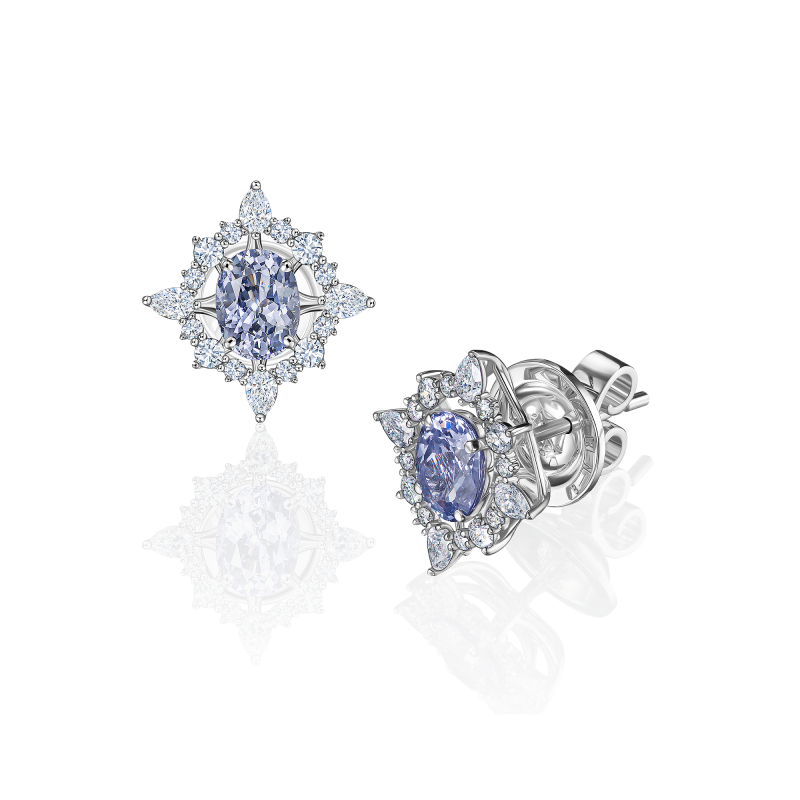 Spinel cut oval. Pear-cut and round-cut diamonds.