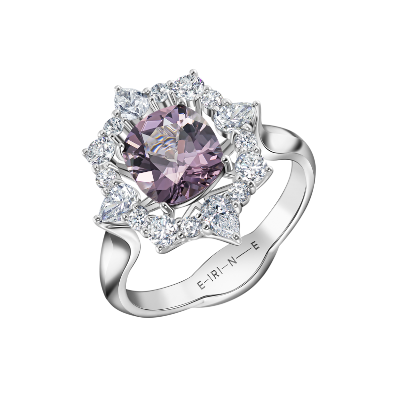 Spinel cut antique. Pear-cut and round-cut diamonds.